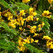 3. Flowers: One of the most attractive features of the Copperpod tree is its vibrant and abundant flowers. The flowers are bright yellow and have a unique shape resembling a small butterfly. They are arranged in dense, showy clusters at the ends of the branches.